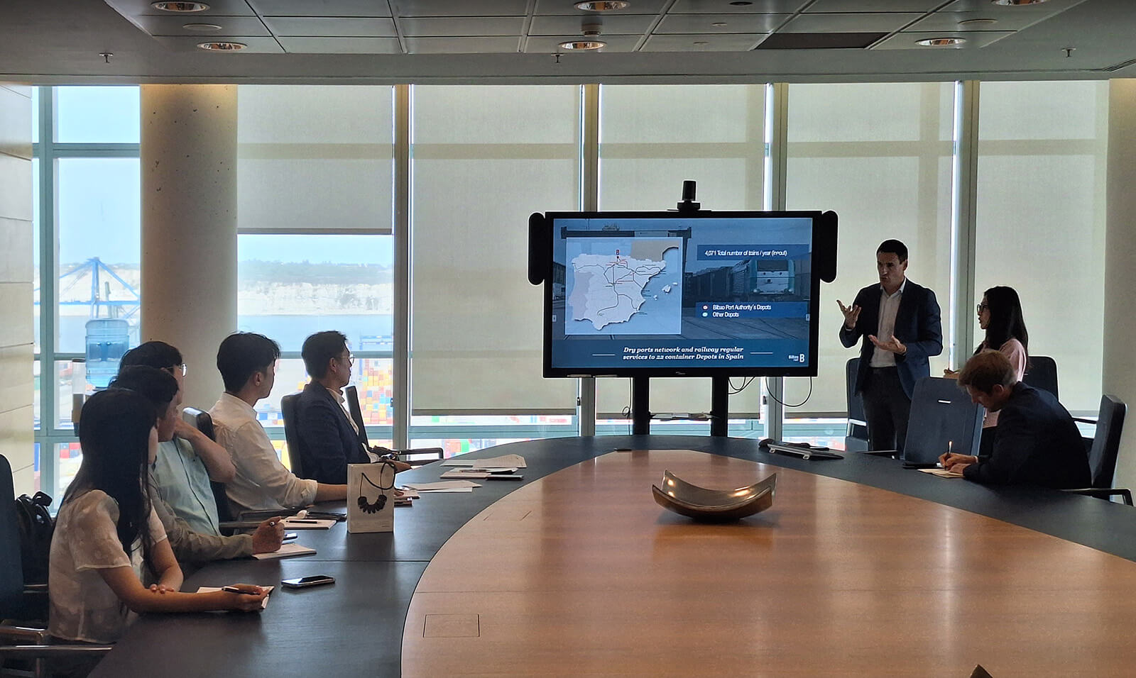 Como parte de la visita, la delegación se ha acercado a las instalaciones del Puerto de Bilbao, donde ha podido conocer los proyectos que se están desarrollando para reducir la huella de carbono de la cadena logística, de la mano de Andima Ormaetxe, director de Operaciones, Comercial y Logística de la Autoridad Portuaria de Bilbao.
